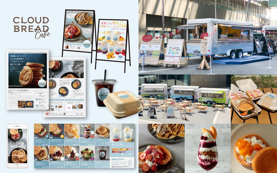 欧米のSNSやインスタグラムで話題になっている、低糖質&グルテン不使用のハイブリッドダイエットフード「クラウドブレッド」のブランディングを担当。ロゴデザイン、グラフィックデザイン、パッケージ、撮影、Webデザイン、ECサイト、メニュー開発、店舗デザイン・運用などを担当。
